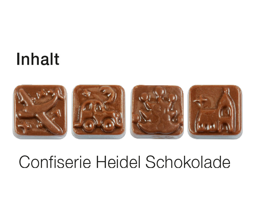 Inhalt: 24 Alpenvollmilch Schokoladentäfelchen der Marke Heidel, 50 g