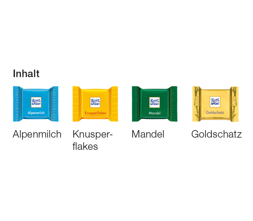 Inhalt: 24 Schokotäfelchen der Marke Ritter SPORT, bunt gemischt, 120 g