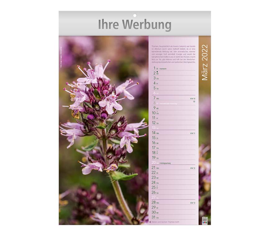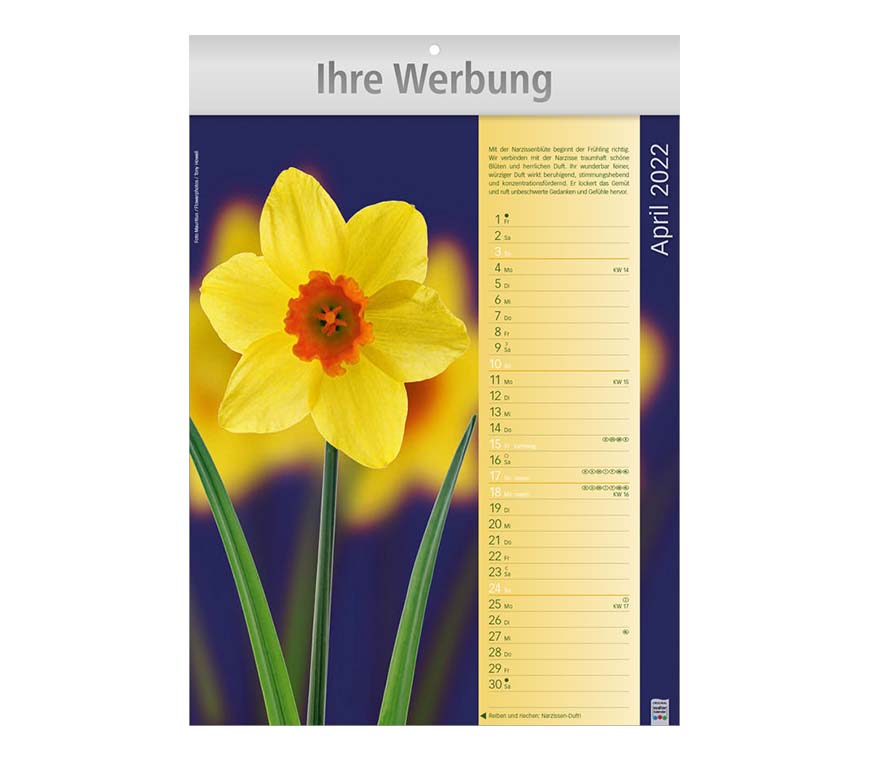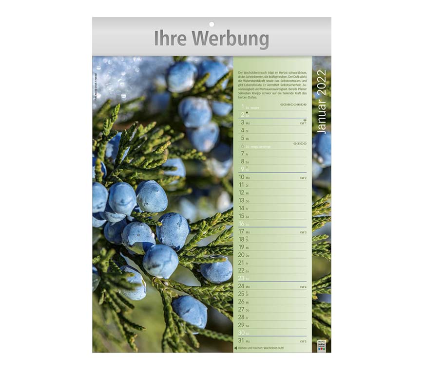 Zwölf verschieden Düfte werden Sie verzaubern – reiben Sie an den Monatsblättern und schon entfaltet sich der wunderbare Duft.