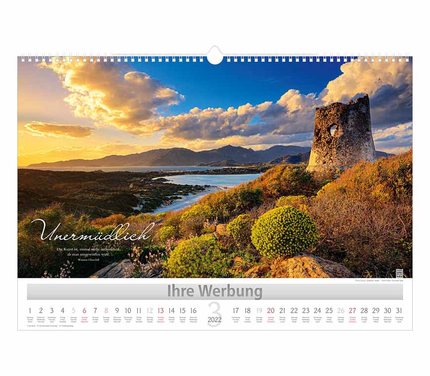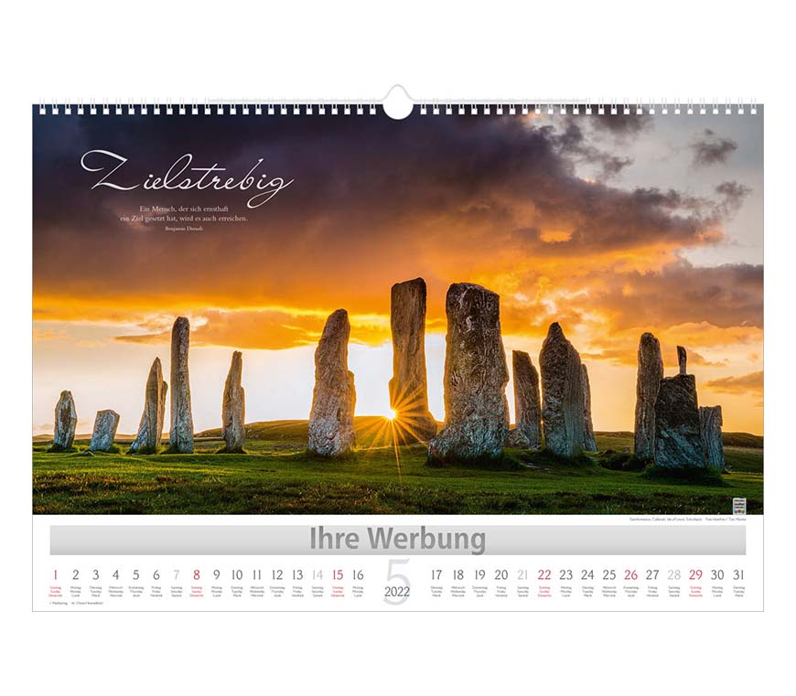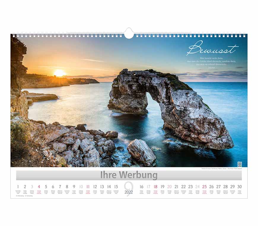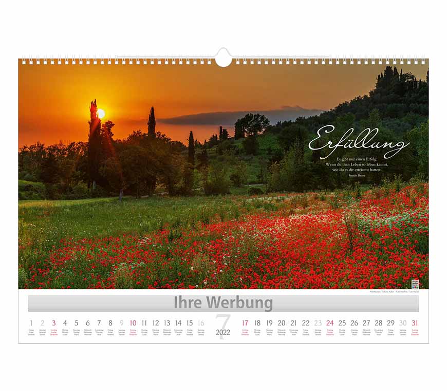Von den Sehenswürdigkeiten Deutschlands bis zu spektakulären Alpenimpressionen - Bildkalender verschönern jeden Raum und stellen ein bleibendes Geschenk für Ihre Partner und Kunden dar. Mit einem Bildkalender sind Sie ein ganzes Jahr an deren Wänden gegenwärtig und Ihre Werbebotschaft damit 12 Monate präsent. Ob faszinierende Landschaften, die Welt der Düfte oder zauberhafte Blüten – bei uns finden Sie für jeden Geschmack passenden Bildkalender. Wählen Sie genau den Motivkalender, der am besten zu Ihnen und zu Ihrem Kundenkreis passt. Sorgfältig hat unser Team von Schulerwerbe.de für Sie eine Vorauswahl eindrucksvoller Bildkalender ausgewählt. Bei vielen können Sie zwischen Klein- oder Großformat, Breit- oder Querformat wählen. Darauf platzieren Sie Ihre persönliche Werbung und fertig ist das perfekte Geschenk zum neuen Jahr.