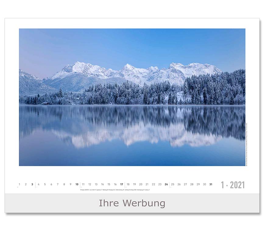 Von den Sehenswürdigkeiten Deutschlands bis zu spektakulären Alpenimpressionen - Bildkalender verschönern jeden Raum und stellen ein bleibendes Geschenk für Ihre Partner und Kunden dar. Mit einem Bildkalender sind Sie ein ganzes Jahr an deren Wänden gegenwärtig und Ihre Werbebotschaft damit 12 Monate präsent. Ob faszinierende Landschaften, die Welt der Düfte oder zauberhafte Blüten – bei uns finden Sie für jeden Geschmack passenden Bildkalender. Wählen Sie genau den Motivkalender, der am besten zu Ihnen und zu Ihrem Kundenkreis passt. Sorgfältig hat unser Team von Schulerwerbe.de für Sie eine Vorauswahl eindrucksvoller Bildkalender ausgewählt. Bei vielen können Sie zwischen Klein- oder Großformat, Breit- oder Querformat wählen. Darauf platzieren Sie Ihre persönliche Werbung und fertig ist das perfekte Geschenk zum neuen Jahr.