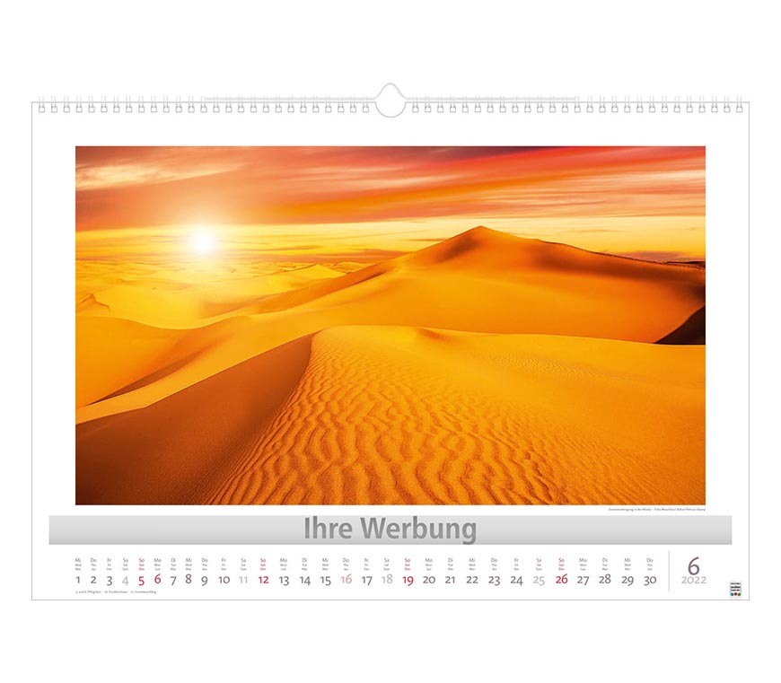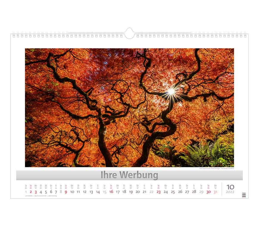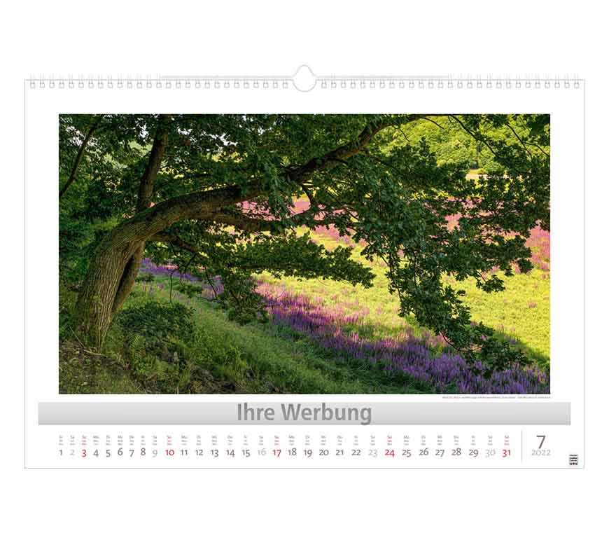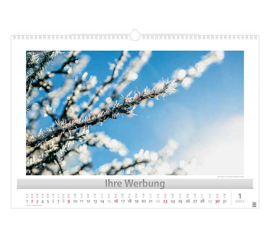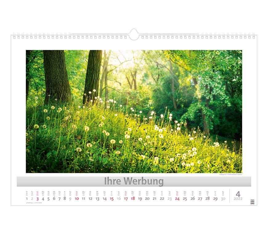 Werbeeindruck nicht auf Titelblatt, aber auf jedem Monatsblatt.