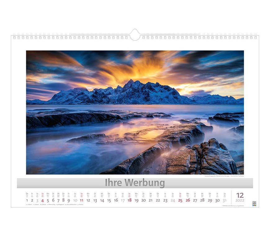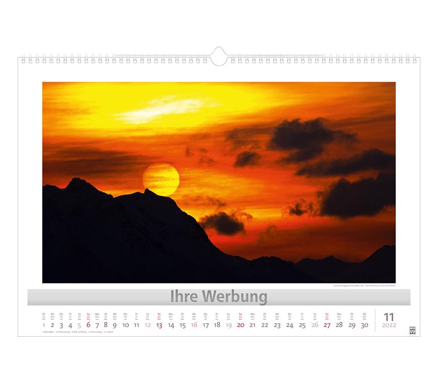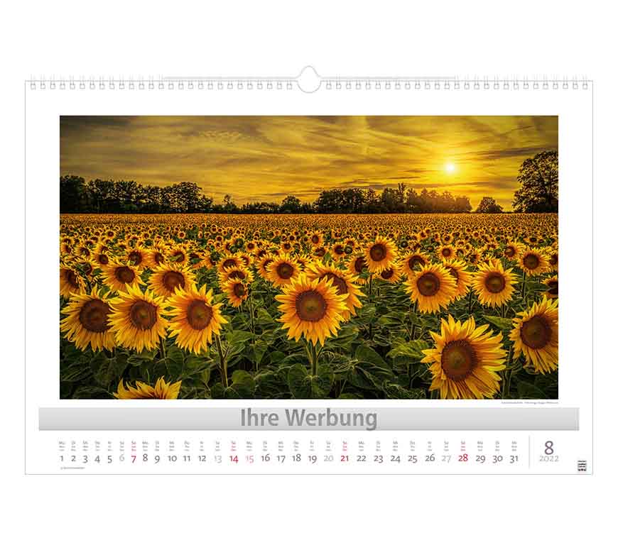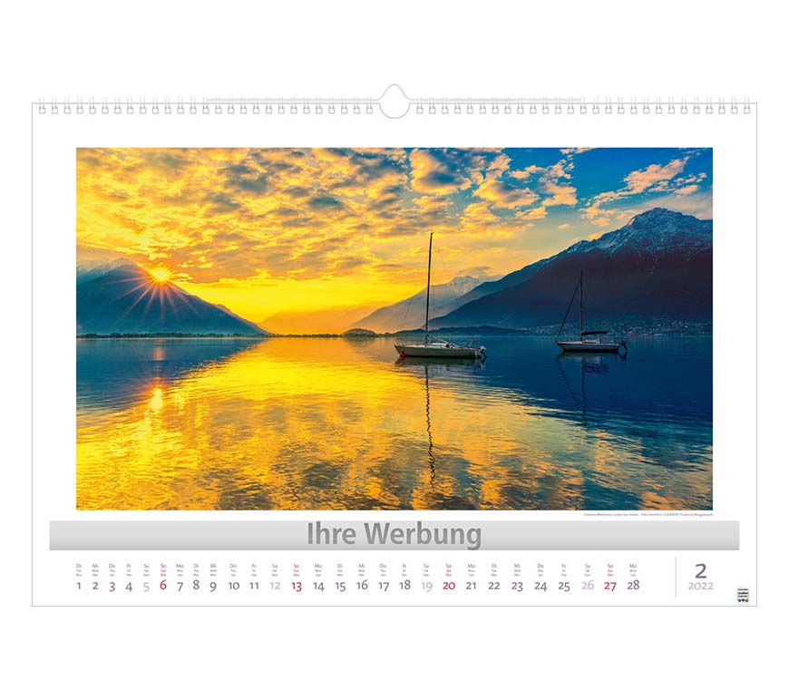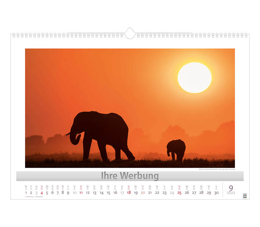 Werbeeindruck nicht auf Titelblatt, aber auf jedem Monatsblatt.