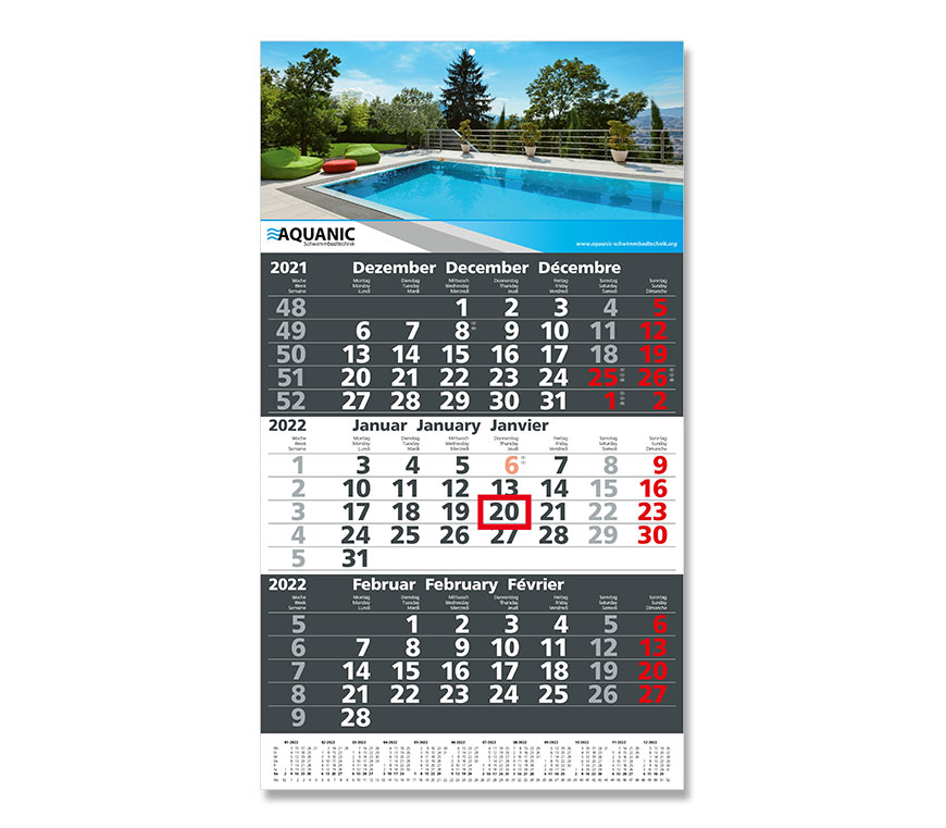 Der 3 Monats-Kalender gehört neben den klassischen Quer-Terminplanern zu den absoluten Bestsellern unter den Werbekalendern. Der beliebte Wandplaner ist ein praktischer Begleiter im Berufsalltag und gehört in Büroräumen quasi zur Grundausstattung. Kein Wunder also, dass kaum ein Planer als Werbekalender beliebter ist als die 3 Monats-Version.