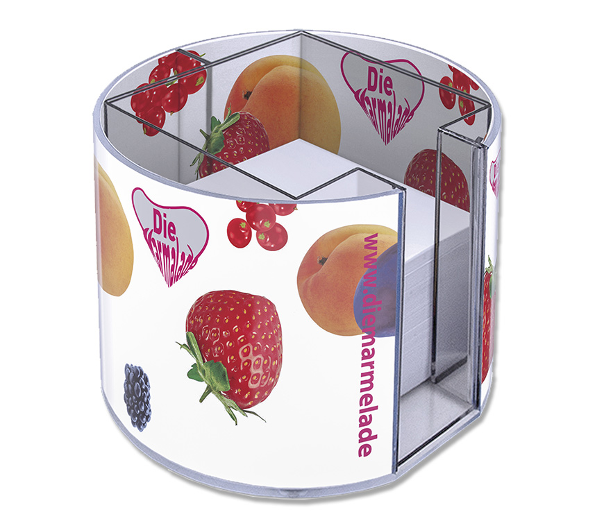 Druck: Papierbanderole (in doppelwandige Box eingelegt) in fotorealistischem Digitaldruck bedruckbar