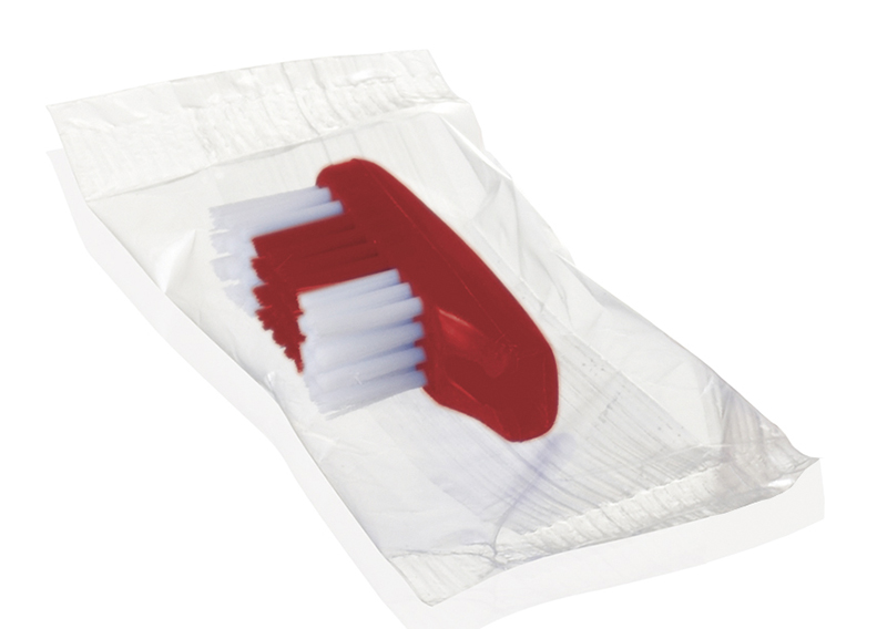 Befüllt mit 1 Reisezahnbürste und 1 Markenzahnpasta (10 ml) - Bürstenkopf einzeln in Folie eingesiegelt